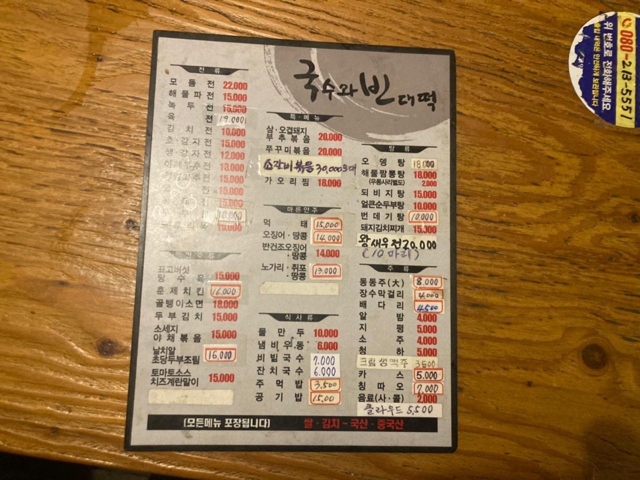 메뉴판 이랍니다.